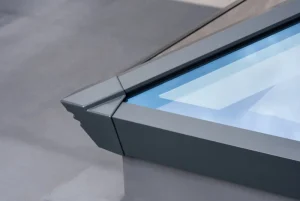 The boasts ultra-low-line aesthetics, with rafters and hip top caps positioned close to the glazing level on the exterior, creating a sleek, modern design. Its refined architectural look is enhanced by corner and rafter end caps that align seamlessly with the perimeter, eliminating any unsightly angles and preserving the clean lines of this high-performance aluminium lantern.